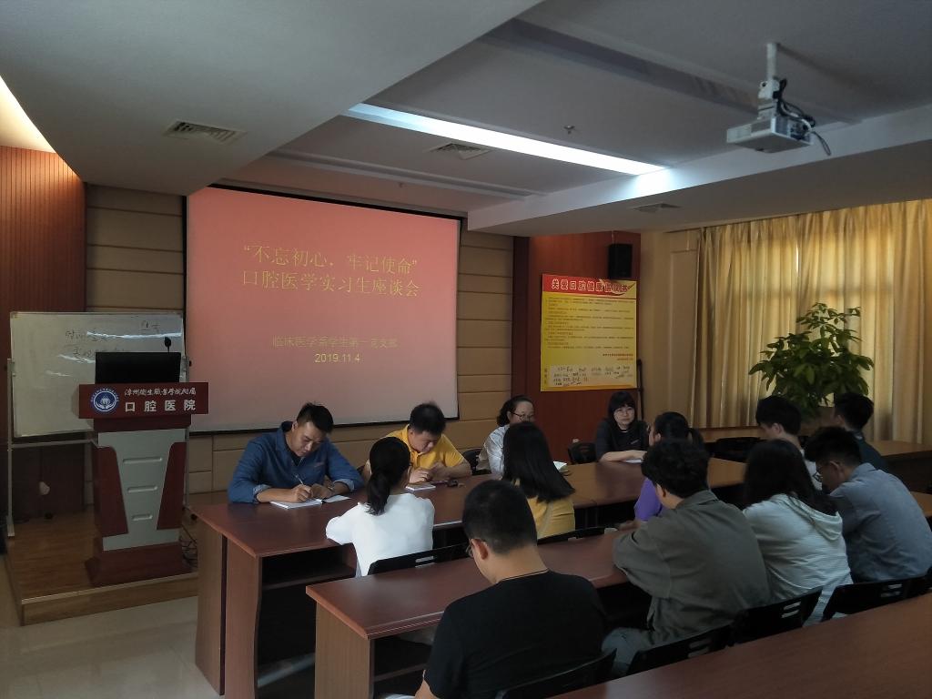 11月4日上午,临床医学系学生第一党支部前往附属口腔医院开展“不忘初心,牢记使命”主题教育活动,支部委员走访学生实习点并召开实习生座谈会。