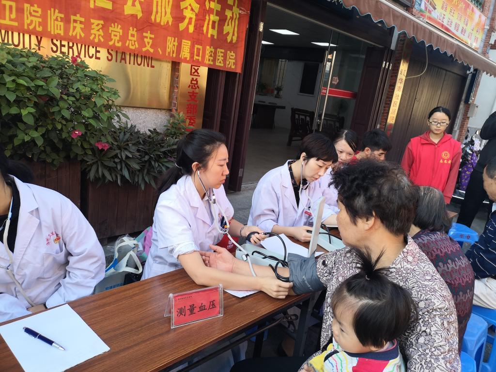 11月8日上午,临床医学系教师党支部联合学生第一党支部在古城,开展“不忘初心,牢记使命”主题教育活动之健康义诊服务。现活动场设有测量血压、血糖检测、口腔检查、艾灸、健康咨询、心理咨询等。现场咨询人数近百人,发放各类健康宣传资料百余份。义诊中,针对每个人的情况,医生耐心地叮嘱他们各种日常注意事项,详细介绍防病和养生知识,提出合理的膳食、运动等生活指导,做到未病先防、疾病防变、预后防复。