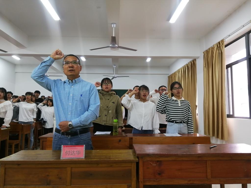 随后,付主任通过调查同学们的学医意愿和未来职业选择,来引导同学们要端正学习态度,并强调道“学医很苦,不能仅仅为了及格而学习,要把学医作为一辈子的事情,终身学习,同时,我对同学们的学习态度很有信心!”接着,付主任与同学们一起庄严宣誓“医学生誓言”:健康所系、性命相托……