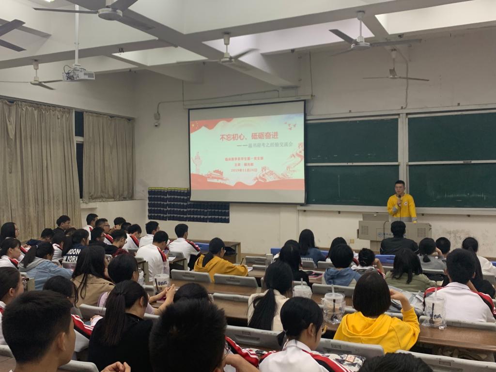 11月26日晚,临床医学系学生第一党支部书记走进挂钩班级——2019级高职临床医学6班,开展“不忘初心、牢记使命”之“温书迎考”主题班会,为即将迎来的期末考下了一场及时雨。