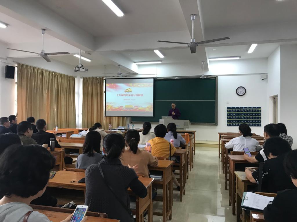 11月26日下午,临床医学系组织全体教职工开展《习近平新时代中国特色社会主义思想学习纲要》和《十九届四中全会公报》精神学习会。