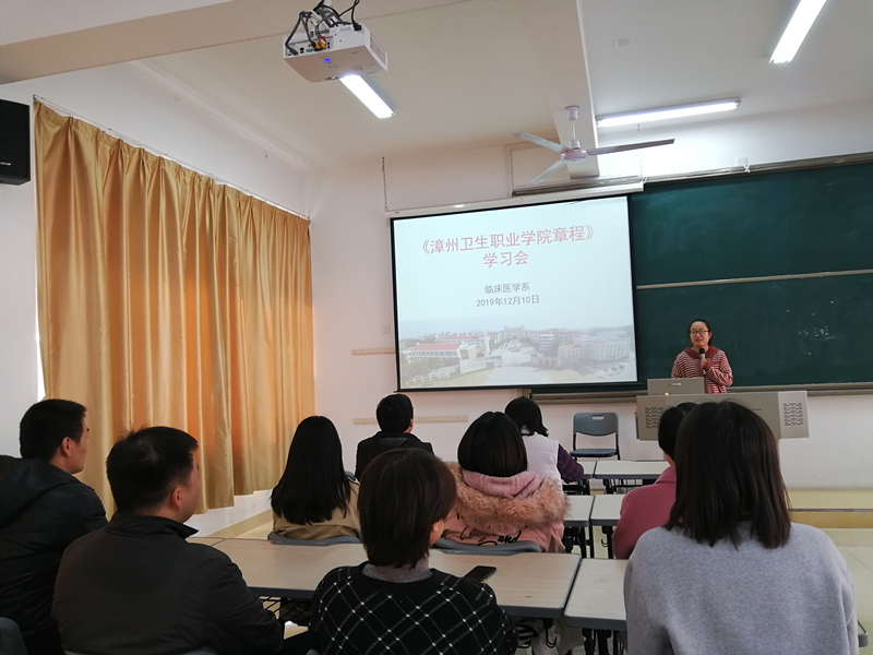 12月10日,临床医学系在厚德楼305召开《宪法》《漳州卫生职业学院章程》学习会,系学生第一党支部书记主持,全体教职员工参加会议。
