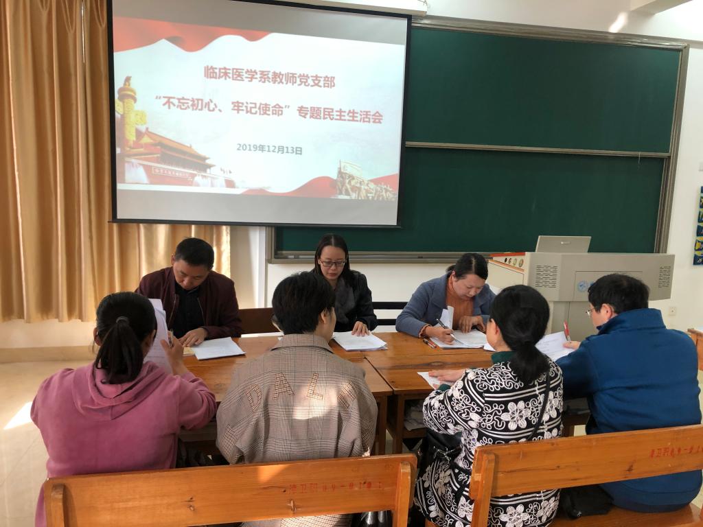 根据学院“不忘初心、牢记使命”主题教育要求部署,临床医学系党总支、各党支部顺利召开专题民主生活会、组织生活会和开展民主评议党员工作。经过会前的精心准备和会上的认真对照检查、坦诚提出批评意见,此次专题民主生活会、组织生活会成功召开,既有红红脸、出出汗的紧张与严肃,又有加加油、鼓鼓劲的团结与和谐,不仅找准了差距,触及了思想,更是提高了认识,增进了团结。