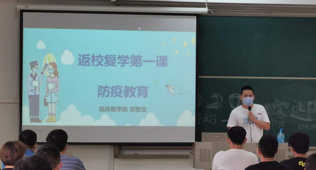 引导青年勇担当。“复学第一课”的最后一个环节是系党总支书记陈莉苹为返校复学同学们准备的题为《战疫大考 时代责任 青年担当》的“思想盛宴”。陈书记讲道,新冠疫情是一场特殊的“大考”。疫情发生后,学院及系部领导积极应对、严密部署,保障同学们的返校前后的教学秩序与生命安全。在此次新冠疫情期间,党员干部、教职员工每天坚守岗位、殚精竭虑。疫情期间,我院共有65位优秀校友参与到援鄂队伍中,更有大量的同学自愿投入到抗疫第一线,力所能及地参与到社区疫情防控志愿服务中,他们运用所学知识与病毒作斗争,与死神抢人,与生命赛跑,展现了漳卫院学子的青年力量。