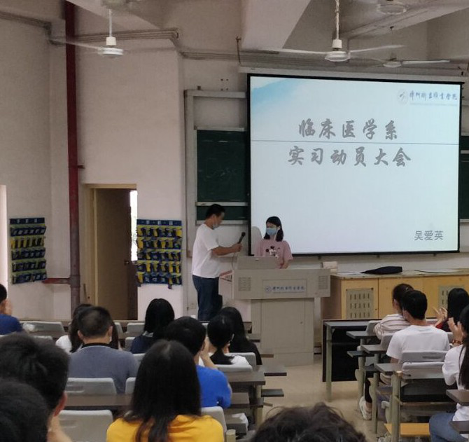 为进一步完善毕业生实习工作,引导学生做好实习心理准备,2020年6月8日,我系在明德楼205分批次召开了2018级学生实习动员会。会议由带班辅导员主持,临床实训中心吴爱英老师主讲,2018级全体同学参加。
