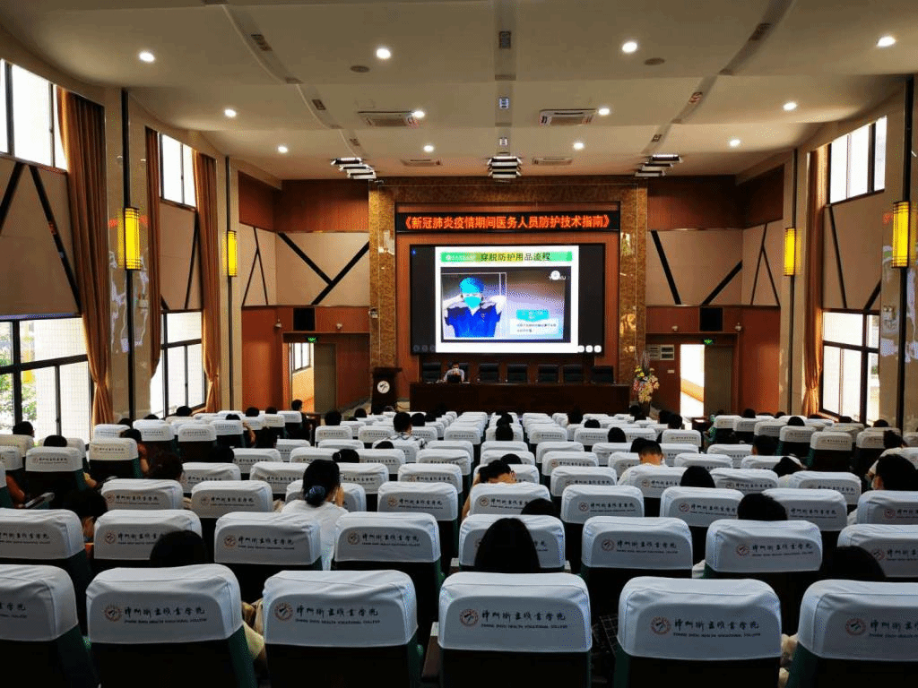 阮汉辉主任以《新冠肺炎疫情期间医务人员防护技术指南》为题,从传染病常识、院感防控相关知识、医务人员分级防护管理、医用防护用品使用范围及穿脱流程、手卫生等方面切入,结合自身专业特点,重点介绍了新冠肺炎的中医药防护知识,给同学们上了一堂专业性十足的岗前教育培训。