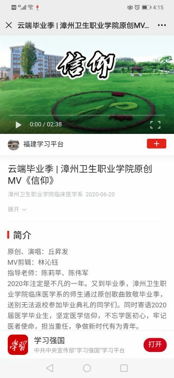 作为医学院校的毕业生,漳卫院临床系的学子们自然也承载着更多的期许与祝福。为了鼓励医学毕业生们谨记医者誓言、坚定学医信仰,临床系师生们通过原创MV《信仰》,希望所有毕业生,做好准备,大步向前,捍卫生命,无所畏惧。此MV也登上了“学习强国”APP。