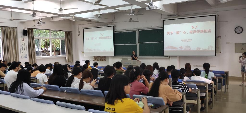 9月29日下午,主题为“天下‘医’心,是责任是担当”的道德讲堂活动在明德楼104教室开讲。此次活动由临床医学系学生第一党支部书记房英娟老师主讲,临床医学系师生120余人参加。