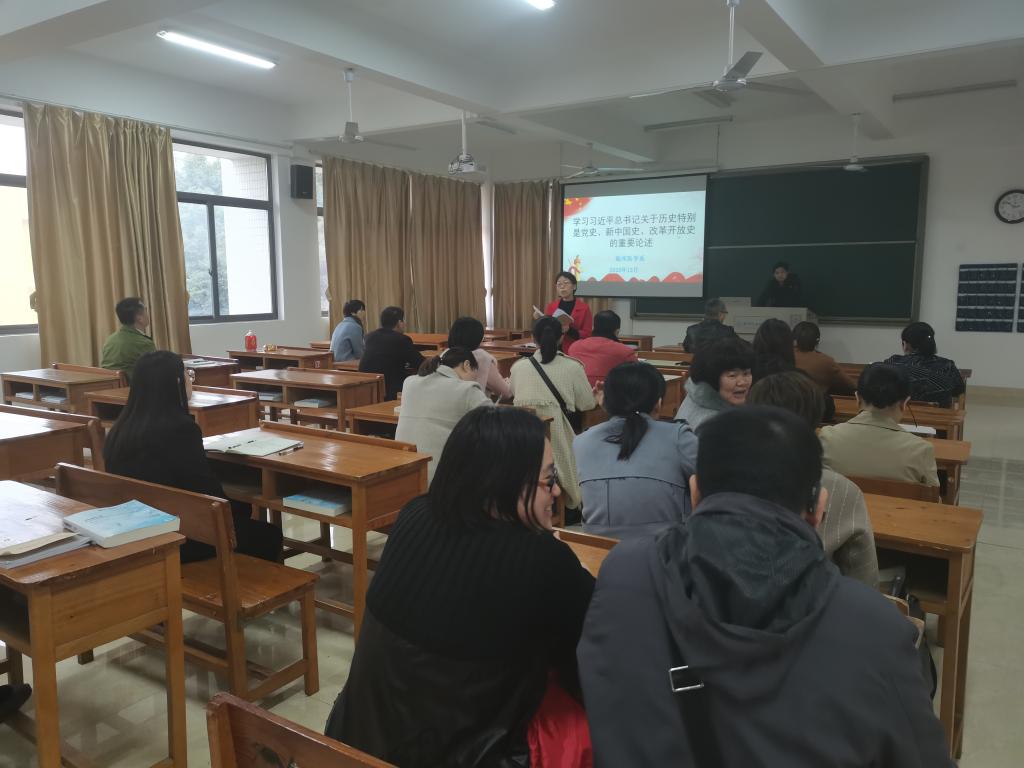 历史是最好的教科书,也是最好的营养剂。学习党史、国史,是党员干部的必修课。林老师从充分学习和领会习近平总书记关于“四史”的重要指示精神,深刻认识“四史”的重大意义,充分汲取“四史”的精神力量等三个方面介绍了会议主要内容。