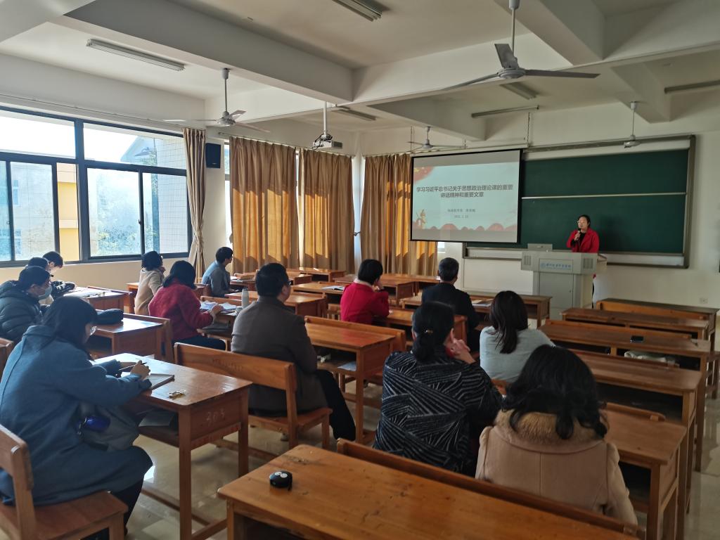 最后,房英娟老师号召全体老师要认真学习贯彻习近平总书记关于思想政治理论课的重要讲话精神,深刻认识做好高校思想政治工作的重大意义、不断增强做好工作的责任感使命感,把思想政治工作贯穿教育教学全过程,围绕学生、关照学生、服务学生,不断提高学生思想水平、政治觉悟、道德品质、文化素养,让学生成为德才兼备、全面发展的人才。
