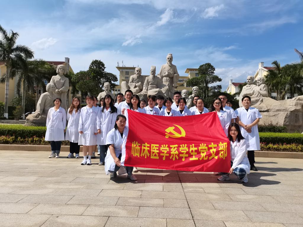 5月12日是全国防灾减灾日,临床医学系学生党支部组织支部党员和全系2020级第一批入党积极分子在学院南门名医雕像群和杏林学堂开展“学党史养医德,奋斗青春护健康”主题党日活动。