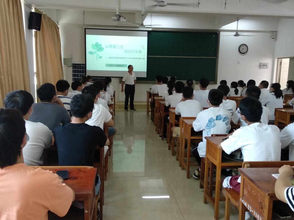 课上,沈国星从三个方面为新生开讲。一是选择漳卫,成就自我。沈国星通过为学生展示漳卫美丽风光以及优异成就,增强新生的荣誉感和自豪感,同时寄语学生不忘初心使命、不负青春韶华,以积极向上的状态去学习、去锻炼、去成长,成为有理想、有文化、有技能、有市场、有贡献的高素质医药卫生人士。二是认知职业,铸就梦想。沈国星通过我院杰出校友的事迹,帮助新生梳理职业规划,让懵懂新生对自己的未来选择有了更清楚的认识。三是大医精诚,练就本领。沈国星以医学生誓言为依托,引导新生要踏踏实实做人、实实在在做事,告诫新生既然选择了医学,就等于选择了温度、情怀和责任,要把握关键、脚踏实地,明确目标、勤学苦练。