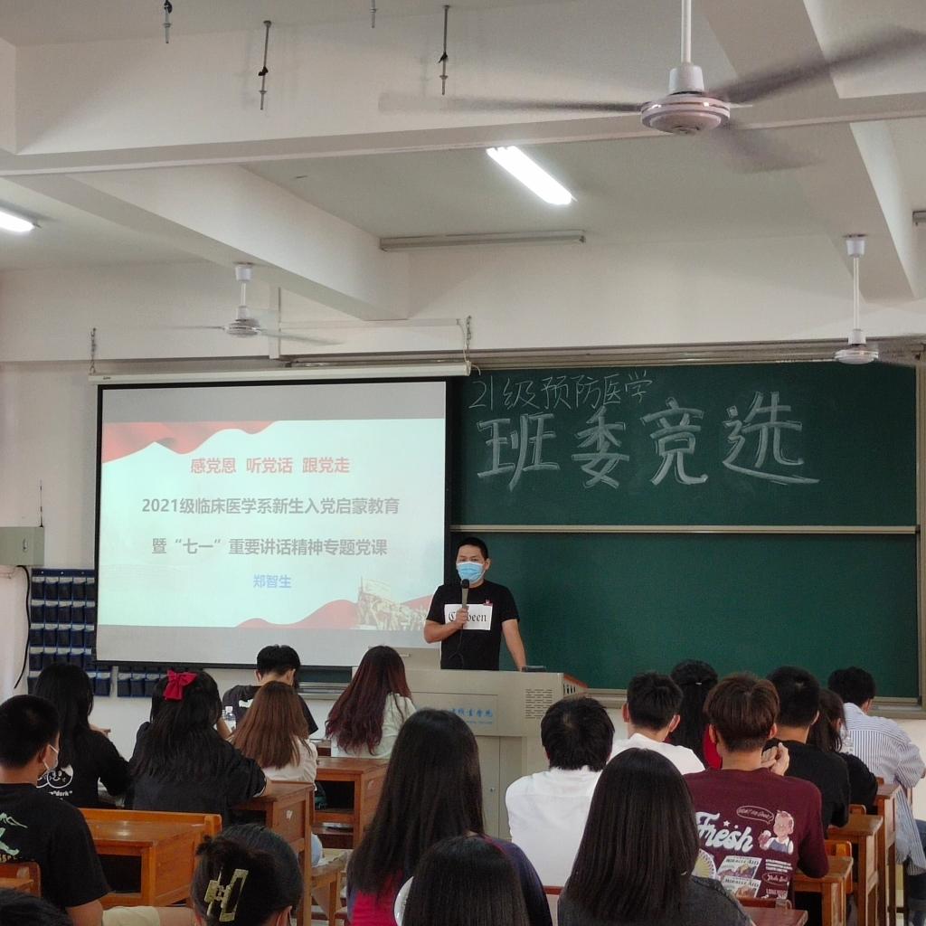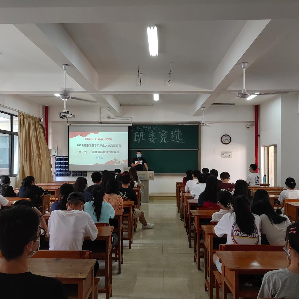 9月27日下午,临床医学系学生党支部书记在励志楼305教室为2021级临床医学系新生代表上入党启蒙教育暨“七一”重要讲话精神专题党课。