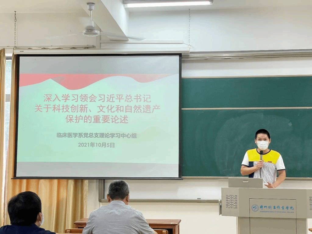 10月5日下午,临床医学系党总支理论学习中心组在厚德楼305学习习近平总书记关于科技创新、文化和自然遗产保护的重要论述,会议由临床医学系党总支宣传委员主讲。