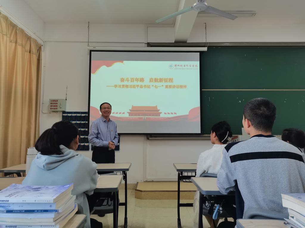 11月9日下午,沈国星院长在笃学楼305为2021级高职临床医学五班学生讲授题为“奋斗百年路 启航新征程——学习贯彻习近平总书记‘七一’重要讲话精神”的思政课。