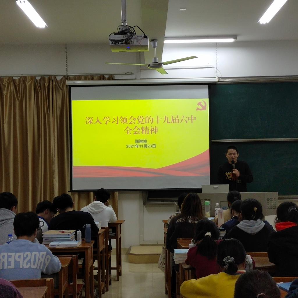11月23日晚,临床医学系学生党支部书记在厚德楼404教室为2020级高职临床医学五班学生宣讲十九届六中全会精神。
