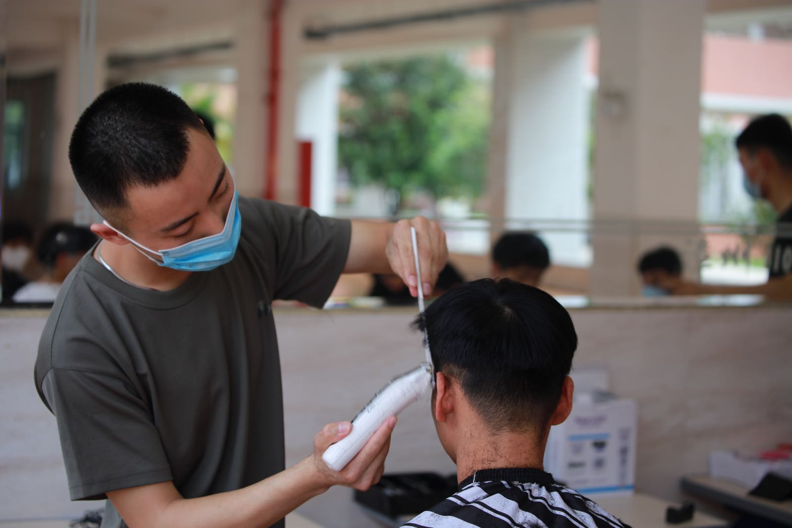 在疫情防控的特殊时期,校园实行封闭式管理,校内学生出不去,校外理发师进不来,理发成为大家共同面临的“难事”。3月26日-27日,临床医学系在励志楼1楼大厅举办“青春战‘疫’,爱心义剪”活动,5位具备基础理发技能的退役复学学生“退役不褪色”,为校内师生及工作人员解决“头等大事”。