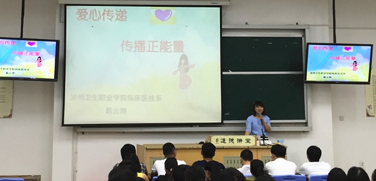 6月2日下午,主题为“爱心传递 传播正能量”的道德讲堂活动在明德楼2教正式开讲。此次活动由临床医技系学生第二党支部教师戴云翔老师主持,临床医学技术系170多名师生参加。
