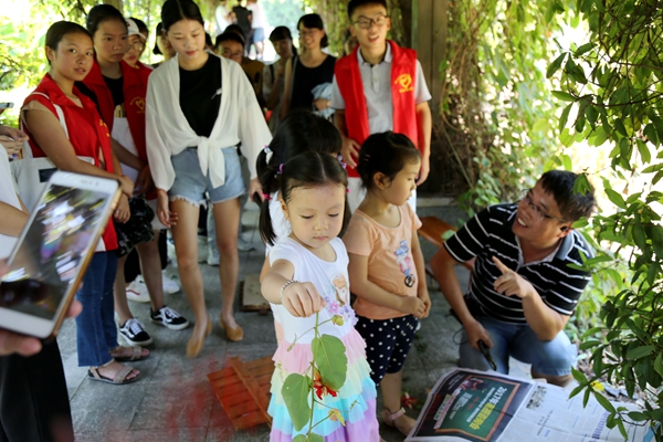 活动充分整合药用植物园科普资源,通过现场科普讲解,制作植物标本、叶脉书签,银杏、鱼腥草、薄荷植物识别,触摸含羞草,闻蒜香藤,吃神秘果等趣味活动,让青少年,小朋友们了解中医药知识,欣赏植物“另类美”等向公众献上了一份科普大餐。