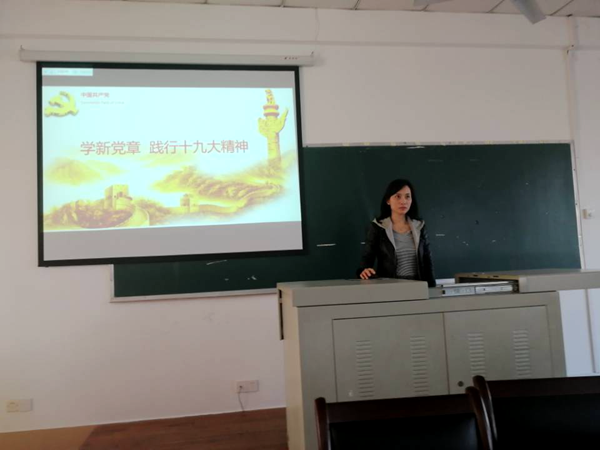 近日,药学系党总支组织全系教职工以“学习新党章,践行十九大精神”为主题的学习会,会议由系党总支书记陈美燕主持,教师第二党支部书记马婧主讲。