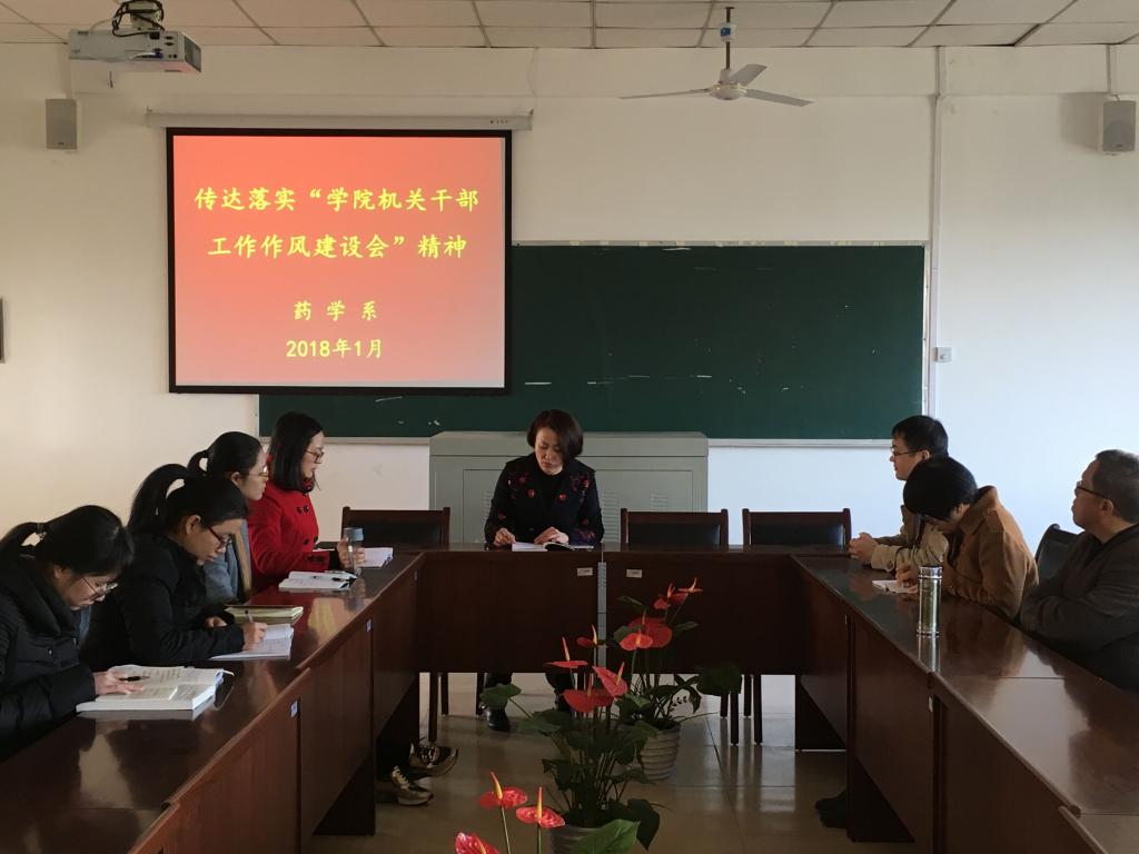 1月15日上午,药学系在致远楼512会议室召开“传达落实学院机关干部工作作风建设会”专题学习会,会议由药学系党总支书记陈美燕主持,药学系行政坐班人员参加。
