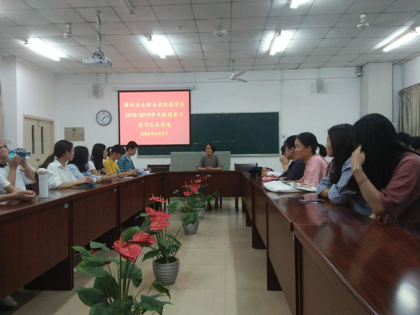 5月8日晚,药学系举行2018-2019学年跟岗实习队长竞选大会。系实习指导老师主持会议,系党总支书记、辅导员及2016级实习参选同学参加了此次会议。