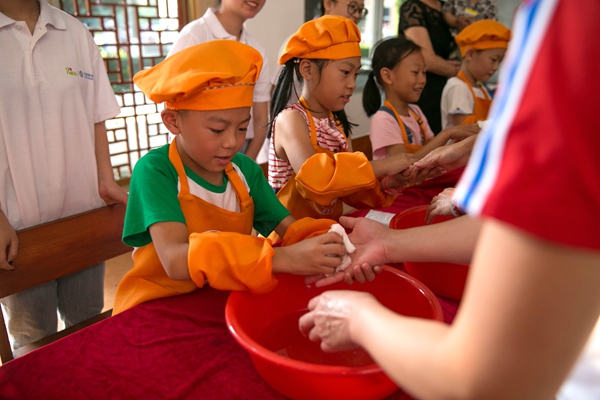 为增强故事性,活动以“神农齐聚,为母寻药”为主线,要求小神农们通过辨识药用植物、扫码回答药植功效等各种考验,亲手制作中药手工皂,同时结合第二天为母亲节这一契机,特别设计小朋友们亲手端水,为父母暖心洗护双手,并献上感恩之吻环节。不少家长表示,这样的活动形式既欢快又富有意义,在娱乐中普及中医药文化的同时,也教育小朋友们要学会感恩尽孝。