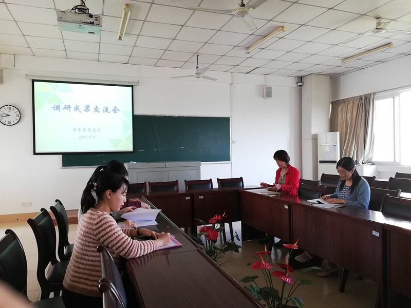11月11日上午,药学系党总支在致远楼512会议室召开“不忘初心 牢记使命”主题教育调研成果交流会。系党总支委员参加了此次会议,会议由党总支副书记主持。