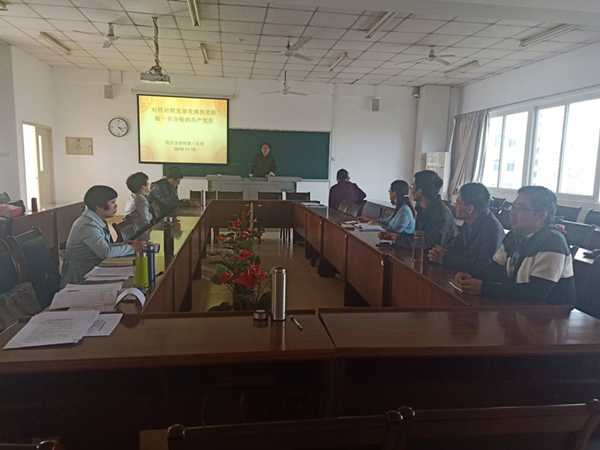 为积极落实习近平总书记重要指示精神,组织引导教师党员以彻底的自我革命精神对照党章党规找差距,11月19日下午,药学系教师第一党支部在致远楼512召开了“不忘初心、牢记使命”对照党章党规找差距专题党员大会,会议由支部书记主持。