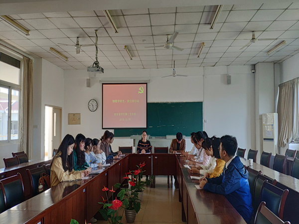 为学习贯彻“不忘初心,牢记使命”主题教育,加强支部党员的责任和担当意识,11月20日上午,药学系学生第二党支部在致远楼512开展师生交流活动,此次的交流活动以“关爱学困生”为主题,支部党员和学生代表参加。