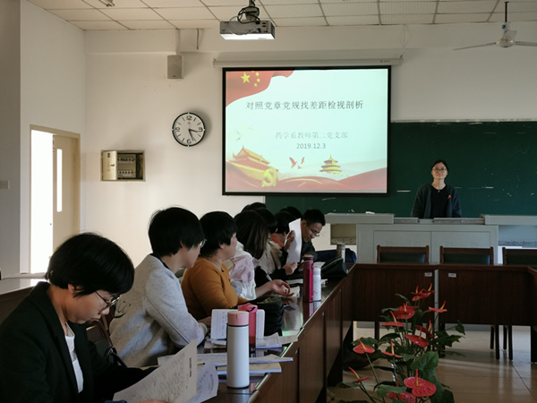 按照“不忘初心、牢记使命”主题教育安排部署,12月3日下午,药学系教师第二党支部在致远楼512召开对照党章党规找差距专题会议。会议由支部书记主持。