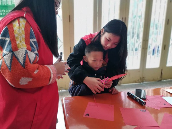 活动中,志愿者分小组与这些特殊儿童走进“同一课堂”,开展篮球赛、拔河赛、剪纸等形式多样的文体活动。活动结束后,校方还邀请志愿者们观看了学校的宣传视频,希望他们深入了解聋哑学校,走近聋哑儿童,积极践行带头传播正能量的时代使命。