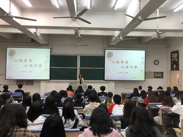 活动伊始,林副书记引用《论语.为政》中孔子的名言“道之以德,齐之以礼,有耻且格”,来讲述道德对于百姓的重要性。随后,她播放了有关“献礼‘中国医师节’的视频短片,让在场同学了解“修德”的意义,身为医务工作者如何在日常生活中行之有效地去践行“修德”。在讲堂交流中,有同学表示通过这次活动让自己明白了作为一名医学生不仅要夯实知识基础,掌握专业技能,同时更应该将优秀品德内化于自己的学习生活中,用优秀的品德指引自己成为一名友善、诚信、勇敢的当代大学生。