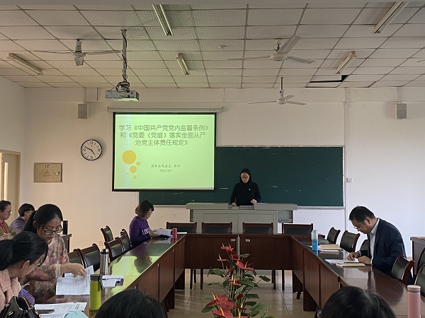 为积极落实全面从严治党主体责任,进一步促进广大党员干部提高认识,自觉履行党内监督的职责,正确行使党内监督的各项权利,3月9日下午,药学系党总支在致远楼512会议室组织全体教职工集中学习《中国共产党党内监督条例》和《党委(党组)落实全面从严治党主体责任规定》,会议由系党总支副书记主持并主讲。