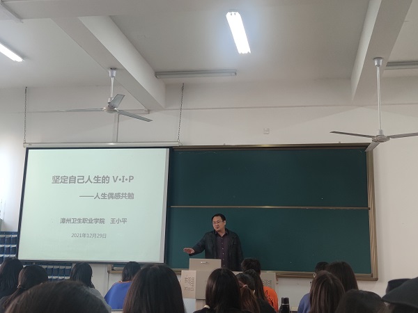 课上,王主任以《坚定自己人生的V·I·P——人生偶感共勉》为题,用深入浅出的语言从“VIEW(发现问题)”、“IDEA(想法)”及“PRACTICE(解决问题)”三个维度阐述了技能型医学生提升专业意识、职业道德及基本素质的重要性。接着,王主任从自身出发,与同学们分享工作实例及感触,希望同学们在课堂学习和社会实践中找到适合自己的学习方法、技巧,培养专业思维。最后,王主任寄语同学们要带着对中药的无限热爱,圆满完成大学学业。