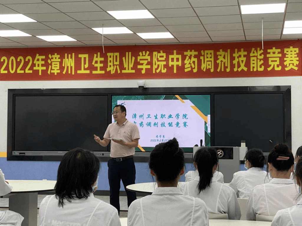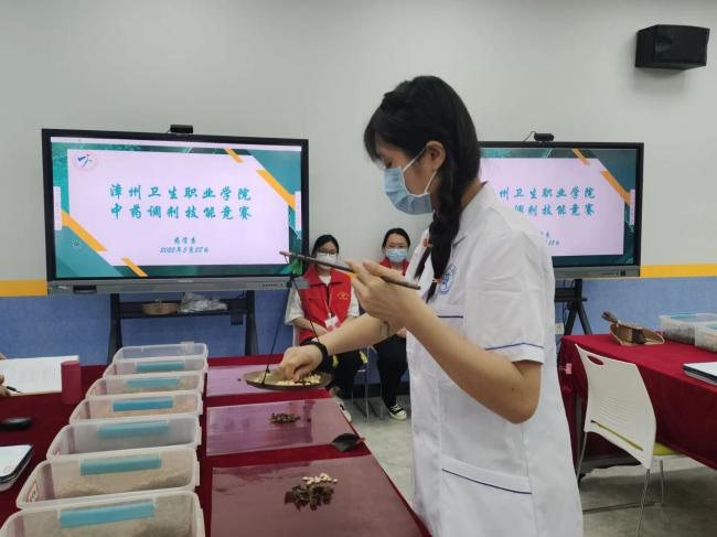 5月28日下午,药学系在致远楼智慧教室举办2022年漳州卫生职业学院中药调剂技能竞赛。药学系主任王小平等7位老师出席并担任裁判。