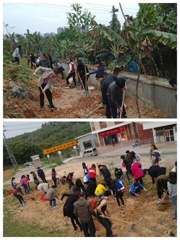 下午四时,参加活动的老师和同学们带着满腔的热情投入到植树中,挥锹铲土、扶直树苗、培土踩实,大家齐心协力、配合默契,为新春的校园添新绿、扮新妆。整个植树现场忙碌而又有序。