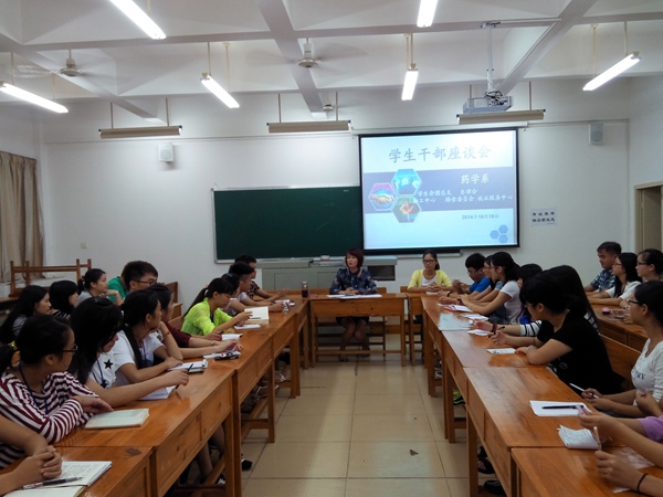 为了进一步增强我系学生干部的自身素质和综合管理能力,明确学生社团工作基本思路,推进药学系社团文化建设,10月10日晚上7点,药学系党总支副书记陈美燕在致远楼308教室召开学生干部座谈会。药学系团总支、学生会、自律会、勤工助学中心及膳食委员会学生干部代表58人参加了座谈会。