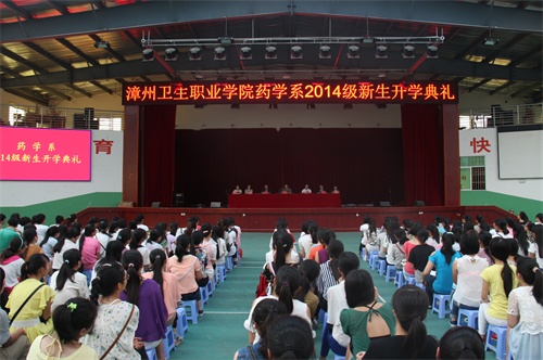 8月31日下午,药学系在阳光体育馆举行2014级新生开学典礼。学院院长、党委副书记黄庶亮,药学系党政领导、教师代表、新生班辅导员及2014级全体新生参加典礼,会议由系党总支副书记陈美燕主持。