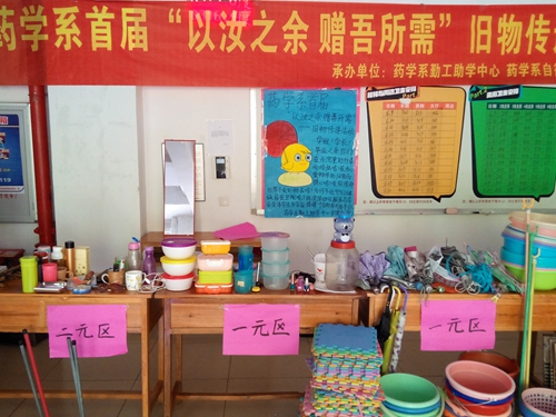 为深入开展好党的群众路线教育实践活动,深入学生宿舍了解学生诉求,用心服务学生。6月19日,药学系举办第一届“以汝之余,赠吾所需”旧物传递活动。