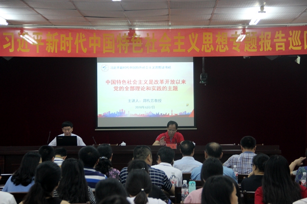 6月7日上午,福建高校学习贯彻新思想宣讲团副团长、中央“马工程”首席专家、全国高校思想政治理论课教学指导委员会委员、省高校思想政治理论课教学指导委员会主任委员郑传芳教授莅临我院作题为《中国特色社会主义是改革开放以来党的全部理论和实践的主题》专题报告。习近平新时代中国特色社会主义思想读书社社员到场聆听。