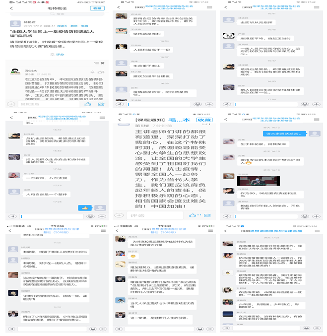 3月9日下午14:30至16:00,教育部社科司与人民网联合,共同推出“全国大学生同上一堂疫情防控思政大课”。全国知名的思政专家艾四林、秦宣、王炳林和冯秀军等四位教授,为全国大学生和思政课教师讲授了一堂高水平思政大课。我院思政部思政课教师以班级为单位组织学生结合课程,通过手机、电脑,APP、QQ、微信等多方式多平台多渠道,与全国高校师生共同收看了直播。