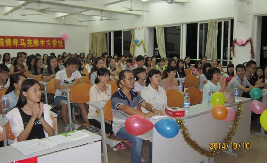 10月10日晚,“青年马克思主义学社”在明德楼19教召开成立大会第一届成员培训大会,思想政治理论教研部的全体教师及“青马学社”的全体成员参加了成立仪式。