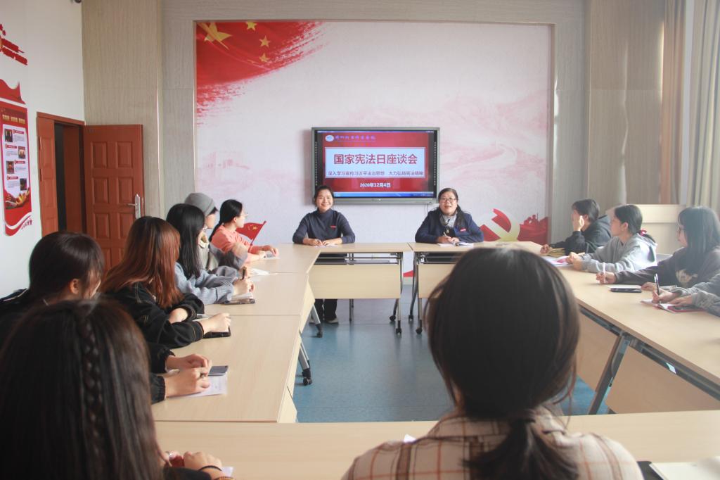 12月4日国家宪法日当天,在厚德楼学术报告厅里,吴菲琼老师向社员们介绍了宪法的发展历程、宪法的地位和作用、宪法的基本原则和主要内容及习近平法治思想;在党建活动中心召开国家宪法日师生座谈会。当天晚上,在黄金时段社员们收看“宪法的精神法治的力量——2020年度法治人物”特别节目。