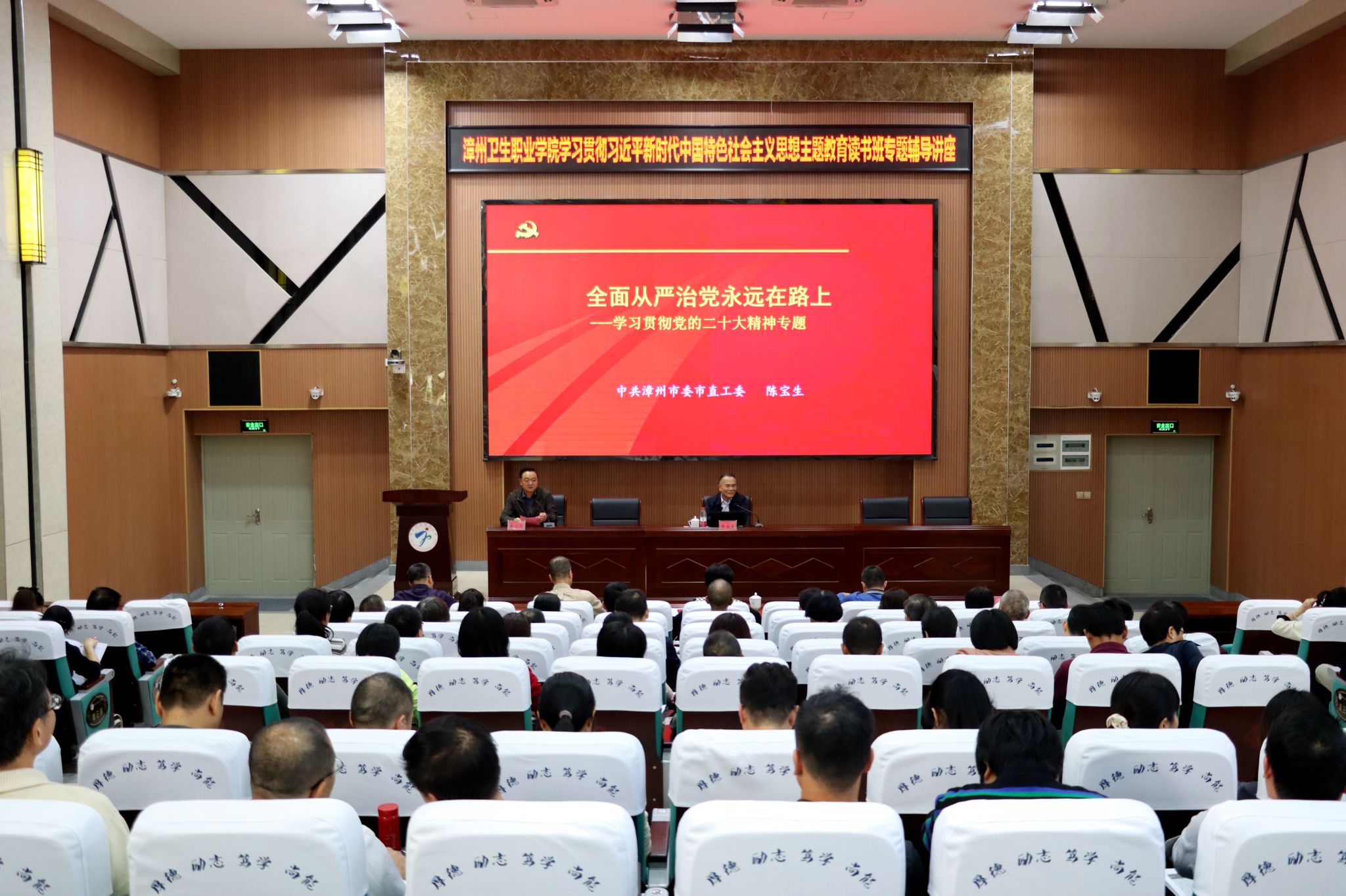 11月28日下午,我校举办学习贯彻习近平新时代中国特色社会主义思想主题教育第三次读书班专题辅导,邀请原中共漳州市委市直机关工委委员、二级调研员陈宝生作《全面从严治党永远在路上—学习贯彻党的二十大精神专题》专题辅导报告。学校党委委员、副科级及以上干部参加学习会。会议由党委副书记黄乃光主持。