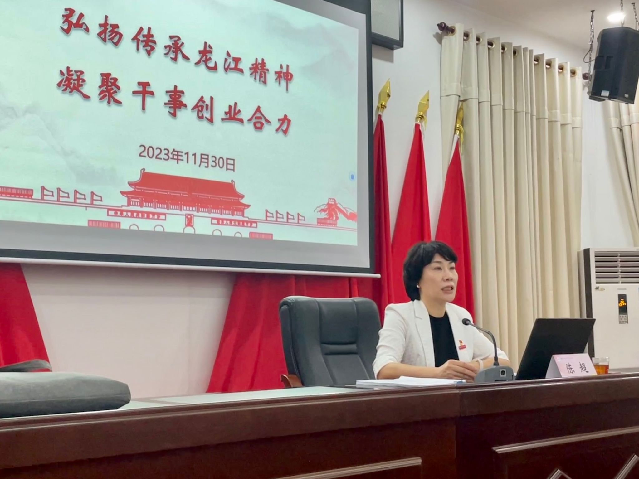 党委委员、副校长陈义三带领与会人员学习了党的二十大报告、《中国共产党章程》、习近平总书记有关主题教育最新重要讲话精神、习近平总书记在金融工作会议上的讲话精神、《习近平同志在福州工作期间关于调查研究的重要要求摘录》及习近平总书记在北京河北考察灾后恢复重建工作时重要讲话精神。党委书记陈超强调,干部队伍是学校各项事业发展的中坚力量,要自觉从龙江精神中汲取干事创业的强大力量,要从团结协作、众志成城的精神中汲取破壁力量。部门成员要发挥分工协作、主动补台的工作方法和优良作风,部门负责人要切实当好整个团队的“领头雁”,引导部门成员团结协作,讲奉献,有作为,在众志成城中发挥出“1+1>2”的效果;部门与部门之间也要讲求团结协作,在科研工作、党建工作、社会服务、产教融合及专业内涵建设等方面打破壁垒,凝聚漳卫合力,续写漳卫辉煌。要从勇于担当、敢于斗争的精神中汲取奋进力量。各部门要始终保持斗争精神,以永远在路上的韧劲和奋起再出发的姿态,锻造一流作风、营造一流环境、创造一流业绩,激活全校上下的内生动力,激发整支队伍的斗争精神;要不断创新思维,立足岗位重点学,以上率下带头学,立足学校实际大兴调查研究,找出解决制约学校发展问题的新思路、新方法,带领全校上下团结一致,谋求学校的新发展。要从顾全大局、舍己为公的精神中汲取奉献力量。必须牢固树立全局意识和主人翁意识,自觉把自己的工作放到大局中把握,从大局上着眼,在大局下行动;必须立足岗位、主动作为,积极推动学校的重点工作和“双高”建设任务落实落细,形成全校上下一盘棋的良好局面,勠力同心推动学校高质量发展。