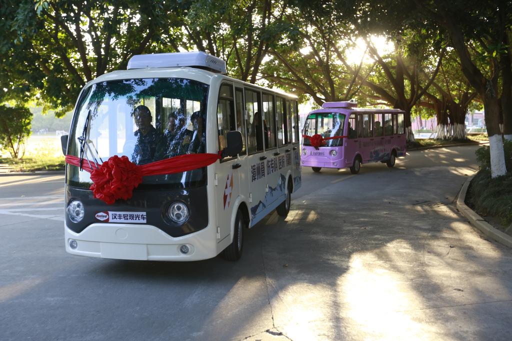 仪式结束后,学院领导和两位校友一同乘坐爱心观光车参观校园美景,畅谈母校这些年的发展变化给大家带来的惊喜与感动。