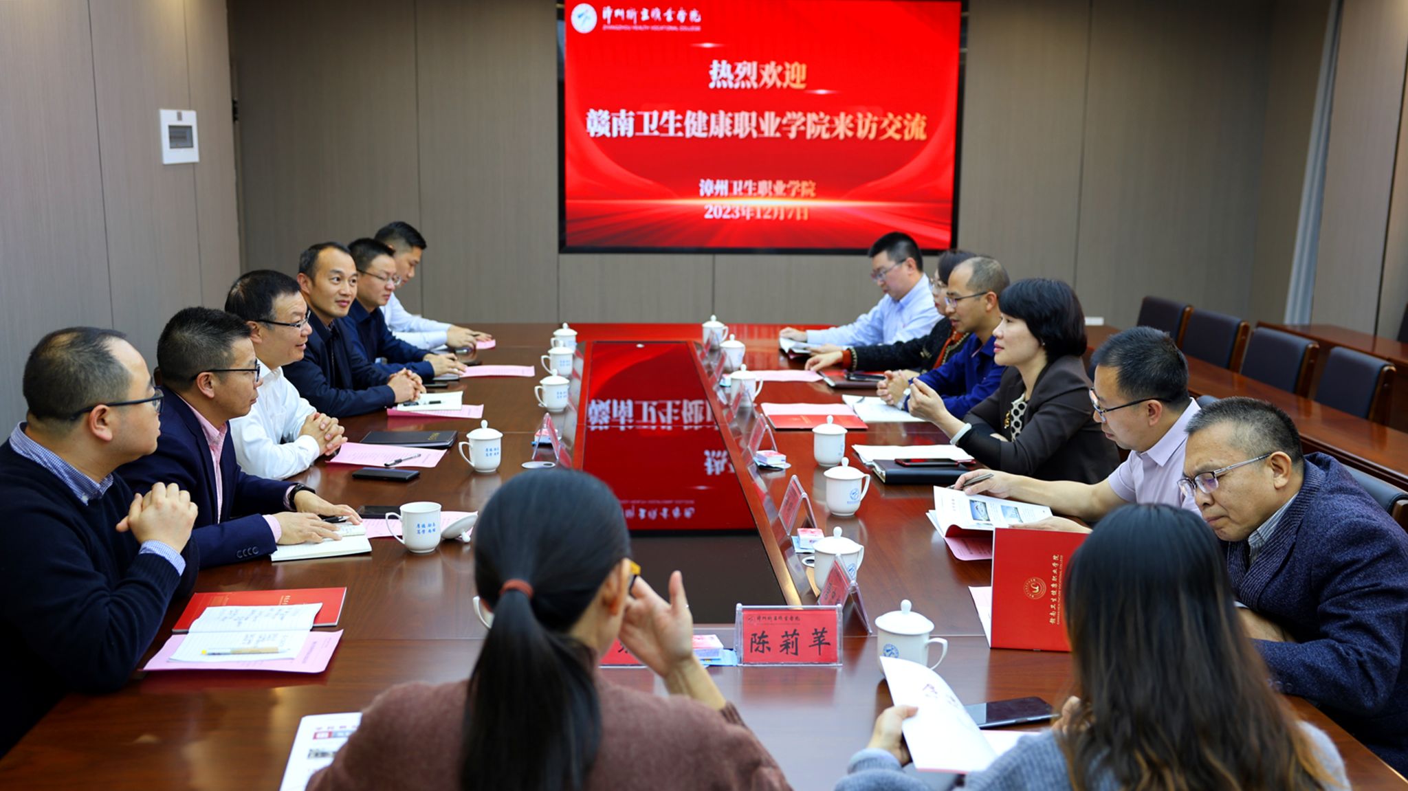 12月7日,赣南卫生健康职业学院党委书记杨明福一行莅临我校开展校际交流。校党委书记陈超、校长何坚陪同。