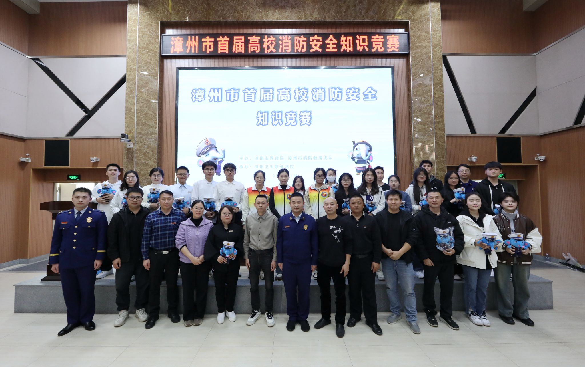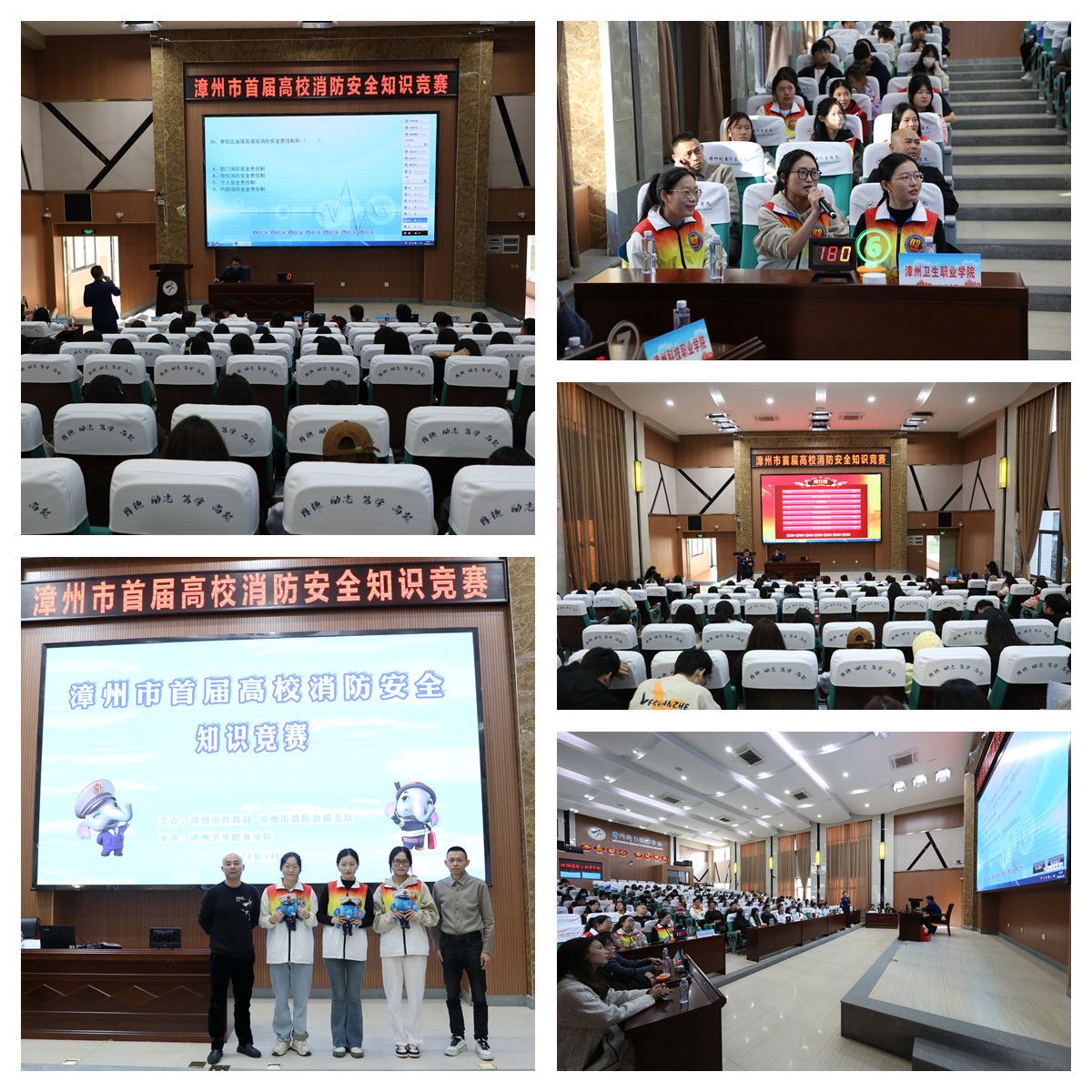 为增强师生的消防安全意识和自防自救能力,促进高校消防安全水平提升,由漳州市教育局、漳州市消防救援支队主办,漳州卫生职业学院承办的漳州市首届高校消防安全知识竞赛在我校举行。市教育局安全科、市消防救援支队领导和各高校负责人到场观摩,闽南师范大学、厦门大学嘉庚学院、漳州职业技术学院、漳州城市职业学院、漳州科技职业学院、漳州理工职业学院等七所高校100多名师生代表参加。