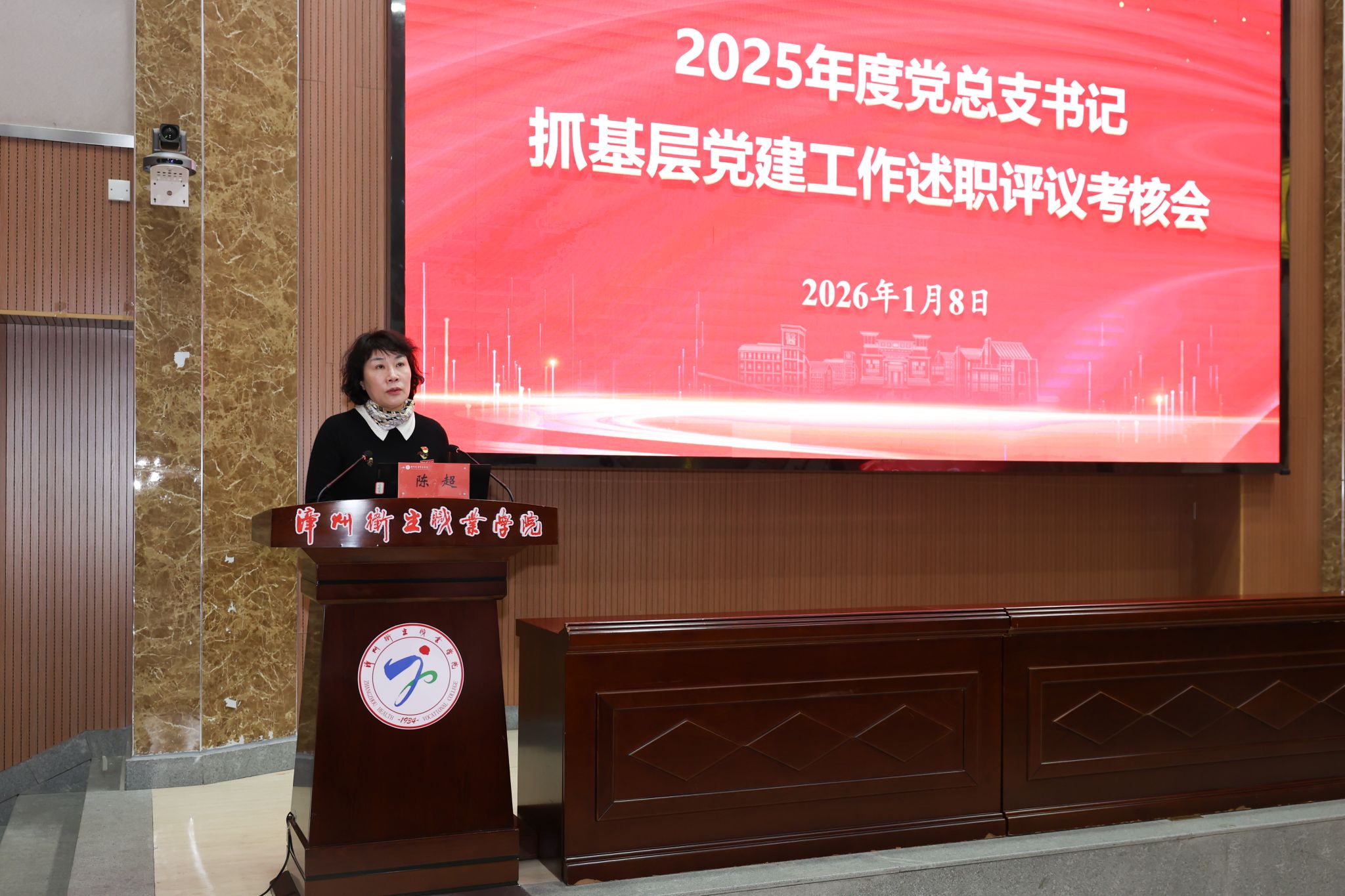 会议采取“一述一评”方式,7位二级学院党总支书记分别围绕2025年党建工作履职情况、特色亮点成效、存在问题、改进举措等方面进行现场述职汇报。校党委书记陈超认真听取了现场述职,并结合日常了解和工作实际作共性情况和个性问题逐一点评。她指出,2025年,全校各党总支坚持以习近平新时代中国特色社会主义思想为指导,紧扣双高建设终期验收和新双高申报培育、“十四五”收官冲刺和“十五五”谋篇布局的关键节点,加强党对学校工作的全面领导,推动基层党建与事业发展深度融合,呈现出组织强基有突破、品牌塑造有成效、服务中心有担当的良好态势。